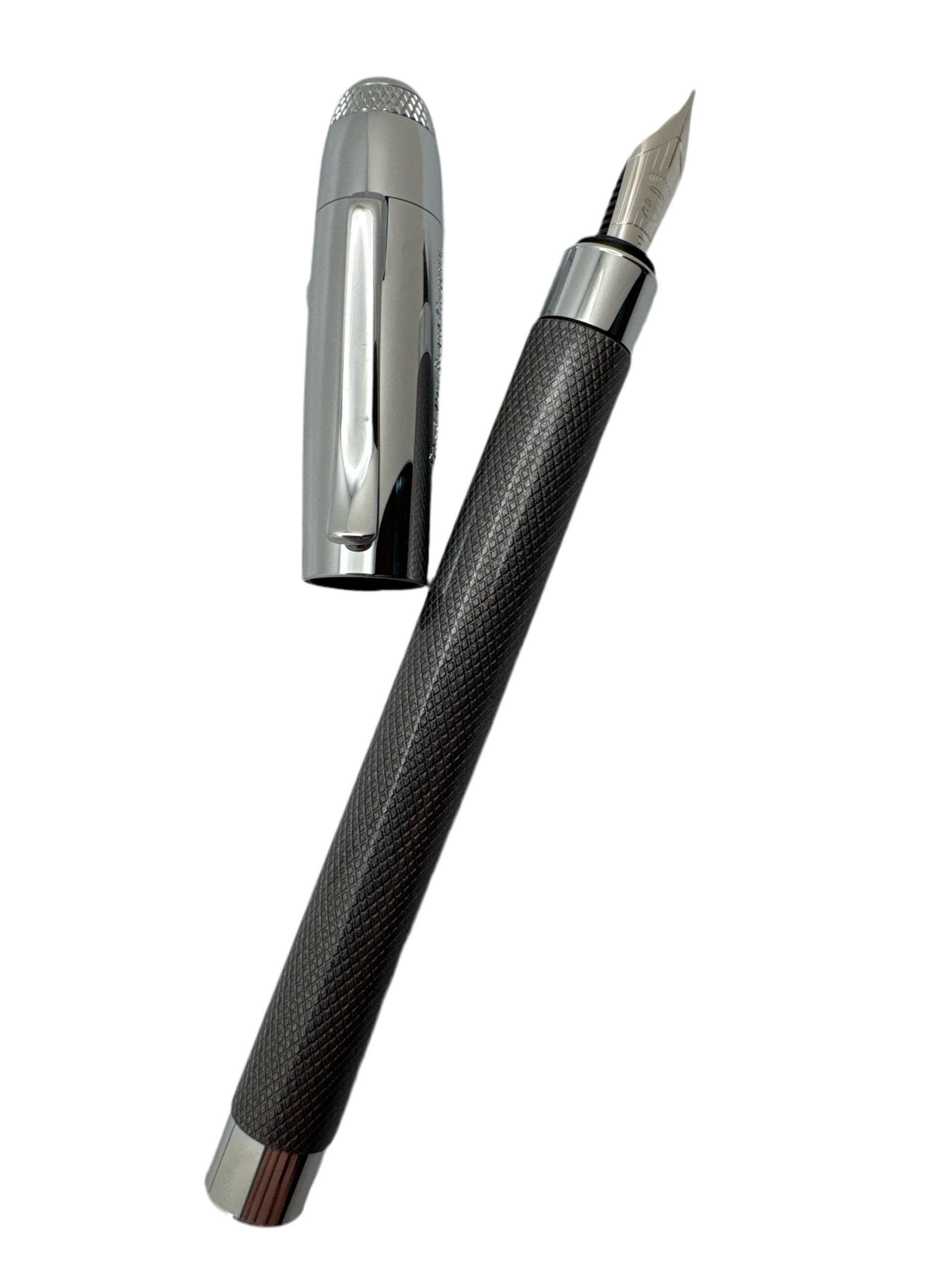 The Graf von Faber-Castell Bentley Fountain Pen in Tungsten Grey is a perfect example of extraordinary craftsmanship and high-quality handcrafter fountain pens. With an elegant and exceptional design, this pen is a must-have for all pen and car enthusiasts. Featuring the iconic Bentley B on the cap and classic knurling, these writing instruments are refined with traditional Bentley design elements. The pen also boasts chrome-plated trims and a rhodium-plated stainless steel nib in Fine, while the slender barrel is meticulously lacquered for a polished finish.