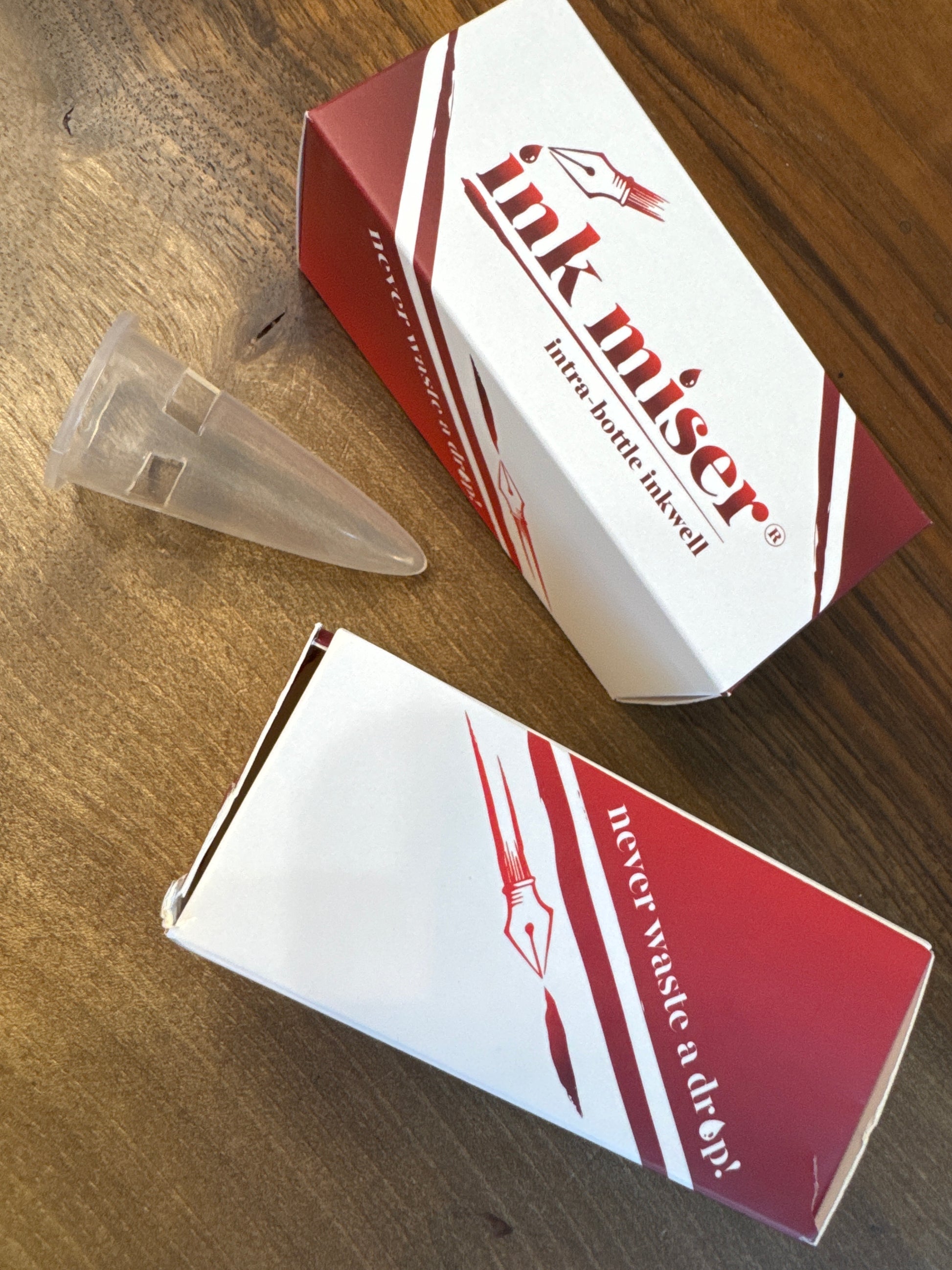 This handy little cone sits on the lip of the ink bottle opening and allows you to maximize the use of you ink when the ink level gets low. Fits in Noodlers 3 oz and Monteverde ink bottles.